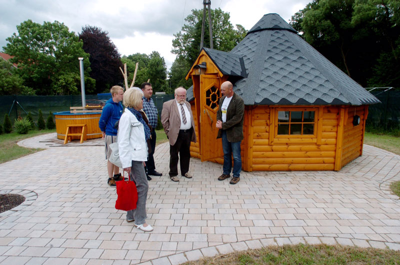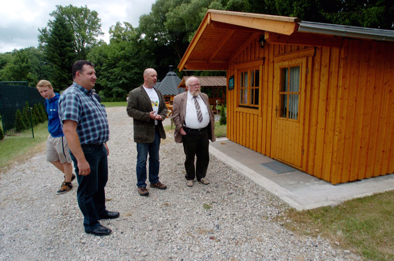 „Quartier nehmen bei Baron von Münchhausen“, hat sich Uwe Kirchmeier als Motto ausgedacht, als er vor ein paar Jahren auf die Idee kam, einen Campingplatz in Bockstadt einzurichten. Entstanden ist ein wahres Kleinod, weit mehr als ein Platz, wo Camper einfach nur einen Strom- und Wasseranschluss für ihr Wohnmobil oder ihren Caravan finden, wie dies anderswo meist der Fall ist. 20 Plätze sind allein dafür eingerichtet worden. Dafür hat er nicht nur mehr finanzielle Mittel eingesetzt, sondern vor allem Ideen, die den Aufenthalt für die Durchreisenden so angenehm wie möglich machen. Seine Rechnung scheint aufzugehen – oft sind die Übernachtungsgäste, die nur eine Nacht geplant hatten, ein paar Tage hier geblieben. Finden sie doch hier (fast) alles vor, war zur Erholung und Entspannung nötig ist. Wo gibt es in der Region sonst noch eine Landsauna, und das in verschiedenen originellen Varianten. Baden kann man hier im Freien, auch wenn Minusgrade herrschen. Eine fahrbare Sauna ist da, und auch in den Blockhütten kann man saunieren. Bald wohl auch noch in dem festen Sanitärgebäude, ausgestattet mit Küche und Bad, das zudem behindertengerecht eingerichtet worden ist.
